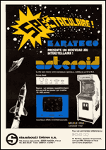 Flyers, brochures and marketing material for the 1979 classic arcade game Asteroids, from various countries.